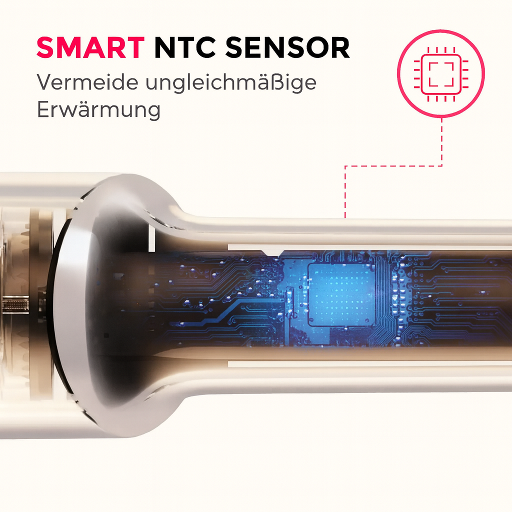 Aussenseite bleibt kühl – keine Verbrennungsgefahr für Hände oder Kopfhaut.