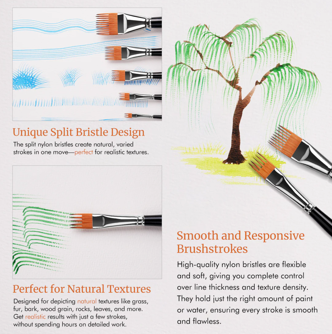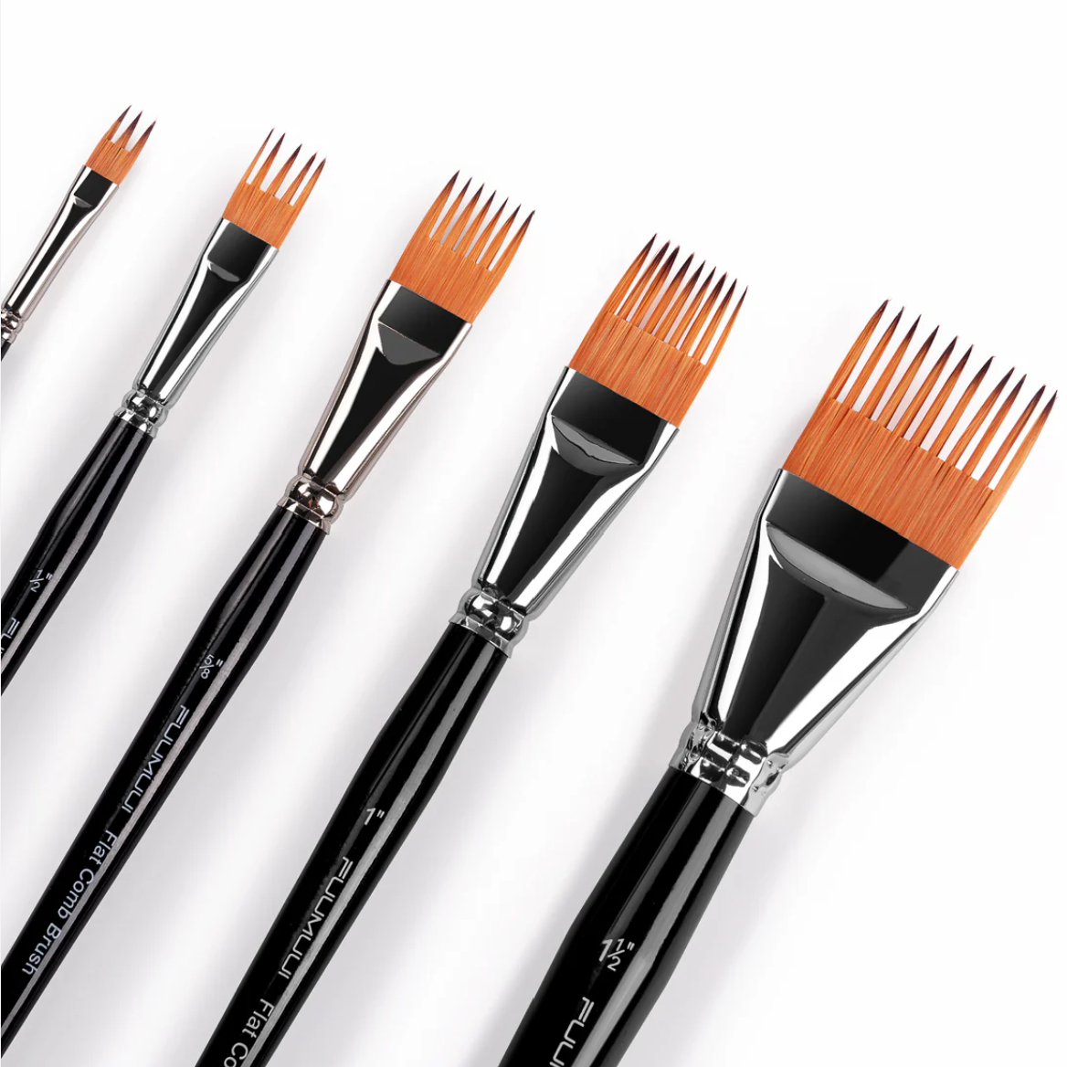 Mit den Flachkampinseln erschaffst du Texturen, die Leben in jedes Kunstwerk bringen. Ob Wellenbewegungen, Holzmaserungen oder feine Fellstrukturen – diese Pinsel geben dir absolute Kontrolle über jedes Detail.