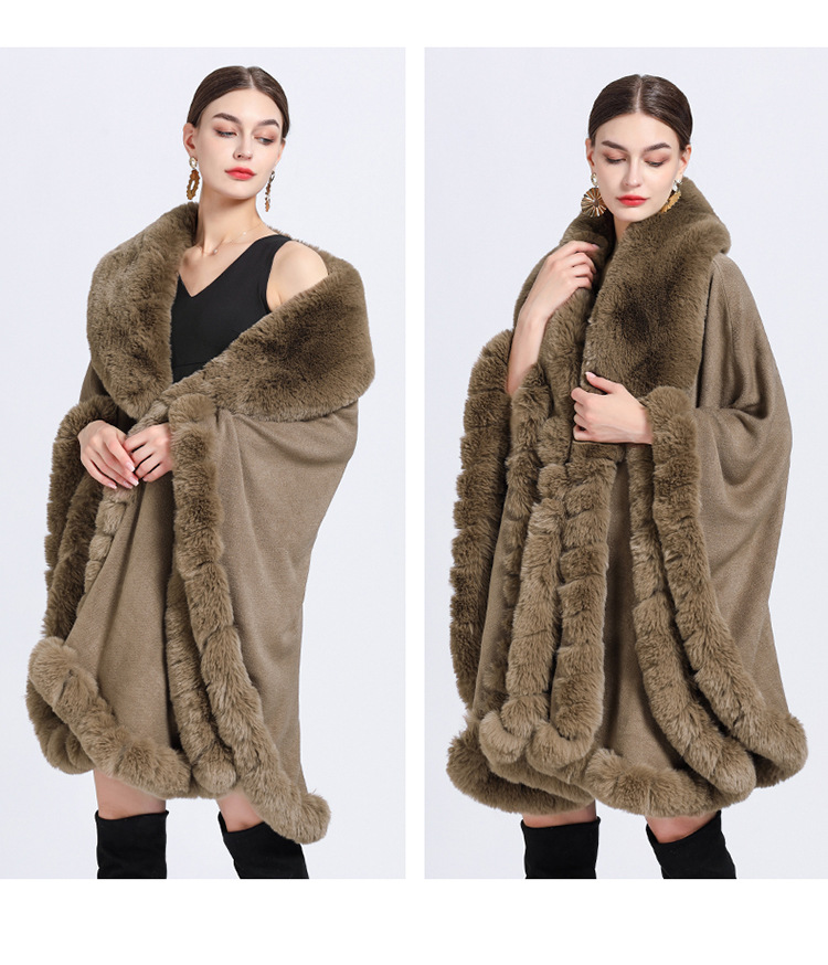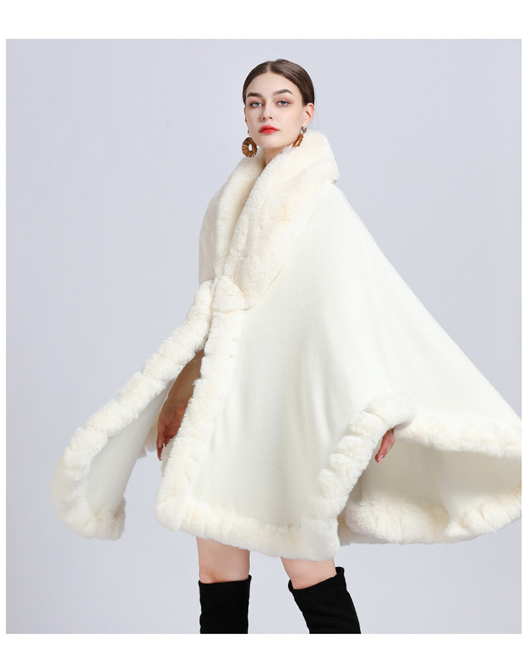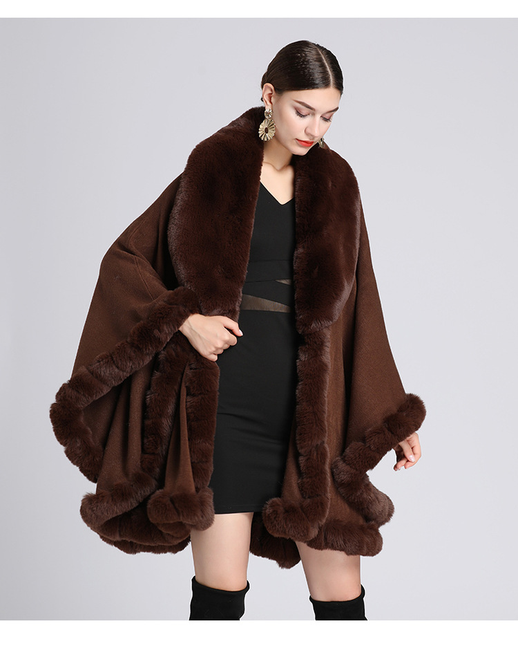 Ladies' Imitation Otter Rabbit Fur Collar Shawl Cloak